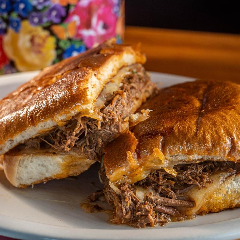 Grilled large telera bread, birria, spread of beans, light mayo, lettuce, tomatoes, onion & cilantro, jalapenos, and avocado.