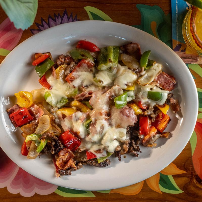 Carne asada, ham, bacon, bell peppers & grilled onions with lots of melted cheese. Served with a choice of flour or corn tortillas.
